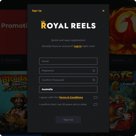 Ready to join Royal Reels? I’ll guide you through. Click “Sign Up” on the homepage and enter your details. Choose a payment method – I found Crypto Deposit handy. Make your first deposit (minimum AU$10). Explore the vast selection of pokies and table games. Pick your favorite and start spinning!